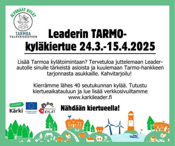 Julkaistu 10.3.2025 Tarmo kyläkiertue 2025 Kärki-Leaderin Tarmo kyläkiertue saapuu Rautjärvelle 7.–9.4. -